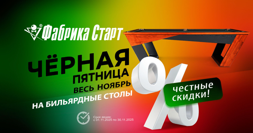 Выбирайте лучшее, выбирайте бильярдные столы и аксессуары от Фабрики «Старт» со скидками! Станьте обладателем оборудования от ведущего российского производителя с...