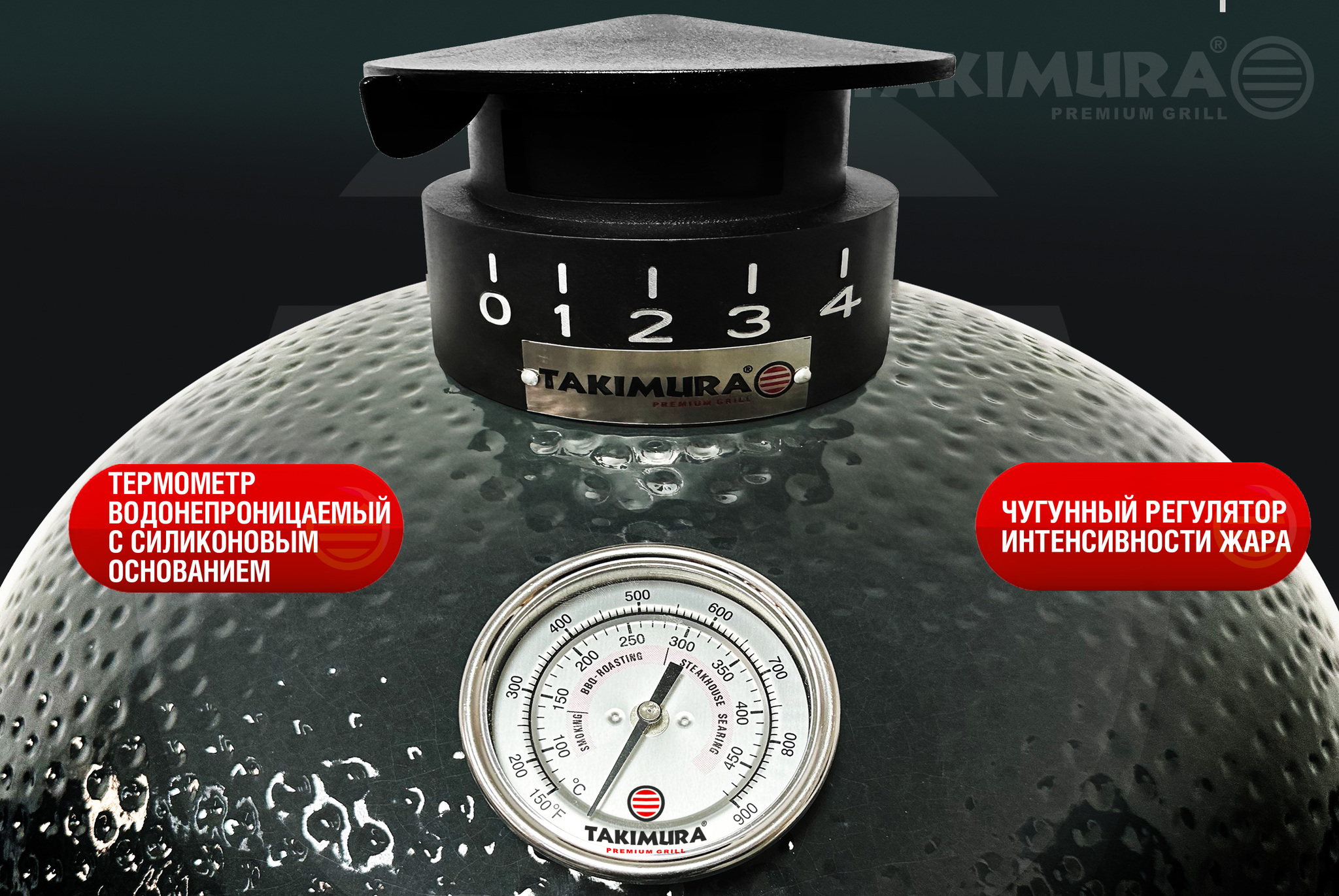 Чугунный регулятор тяги позволяет точно настраивать интенсивность жара, а водонепроницаемый термометр профессионального уровня обеспечивает контроль температуры, что особенно важно для достижения идеального результата.