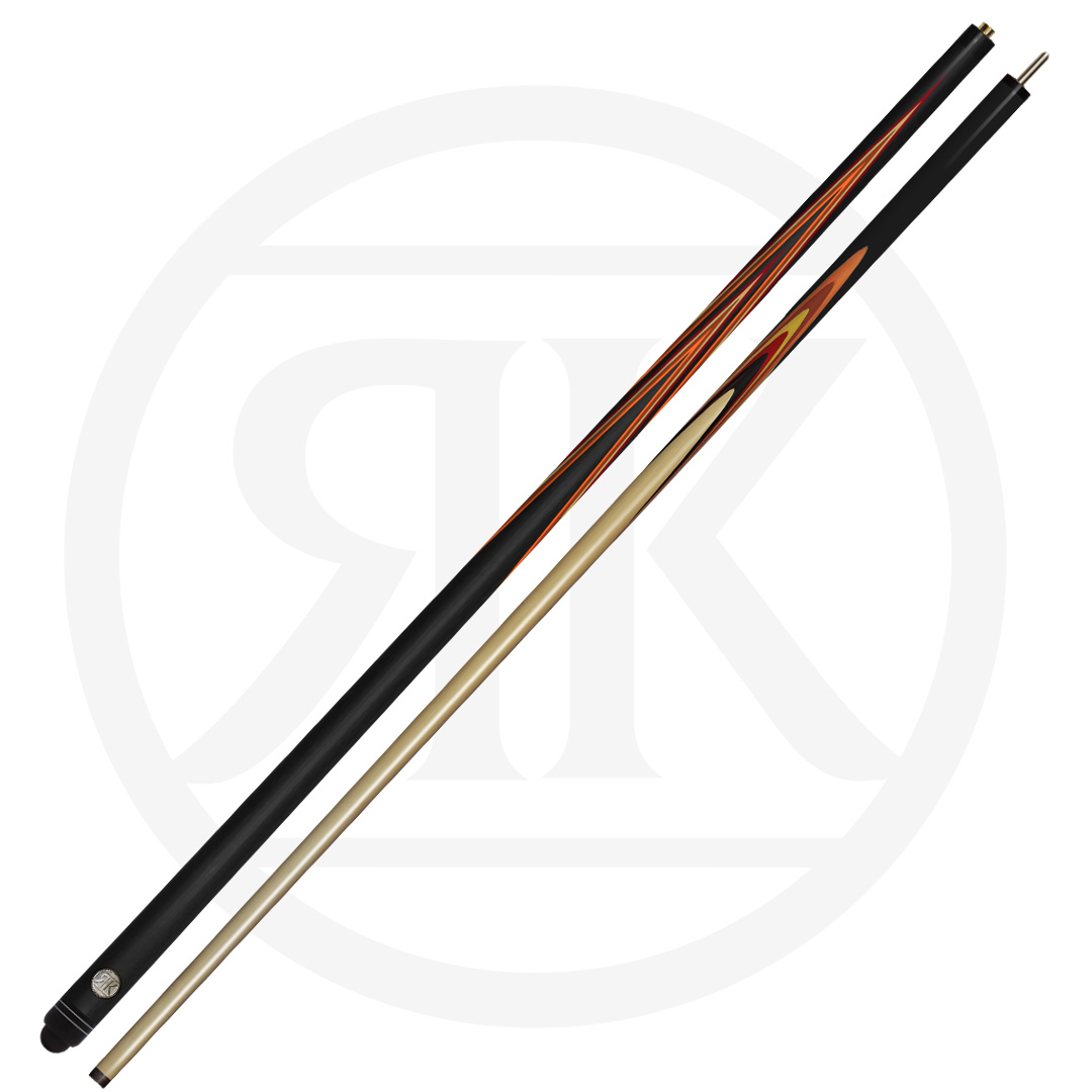 Двусоставный кий. Отлично подходит для игры в пирамиду или пул. 14 ювелирных запила выполнены из ценных пород дерева: граба, черного граба, падука, желтого граба, ятобы и оранжевого граба.