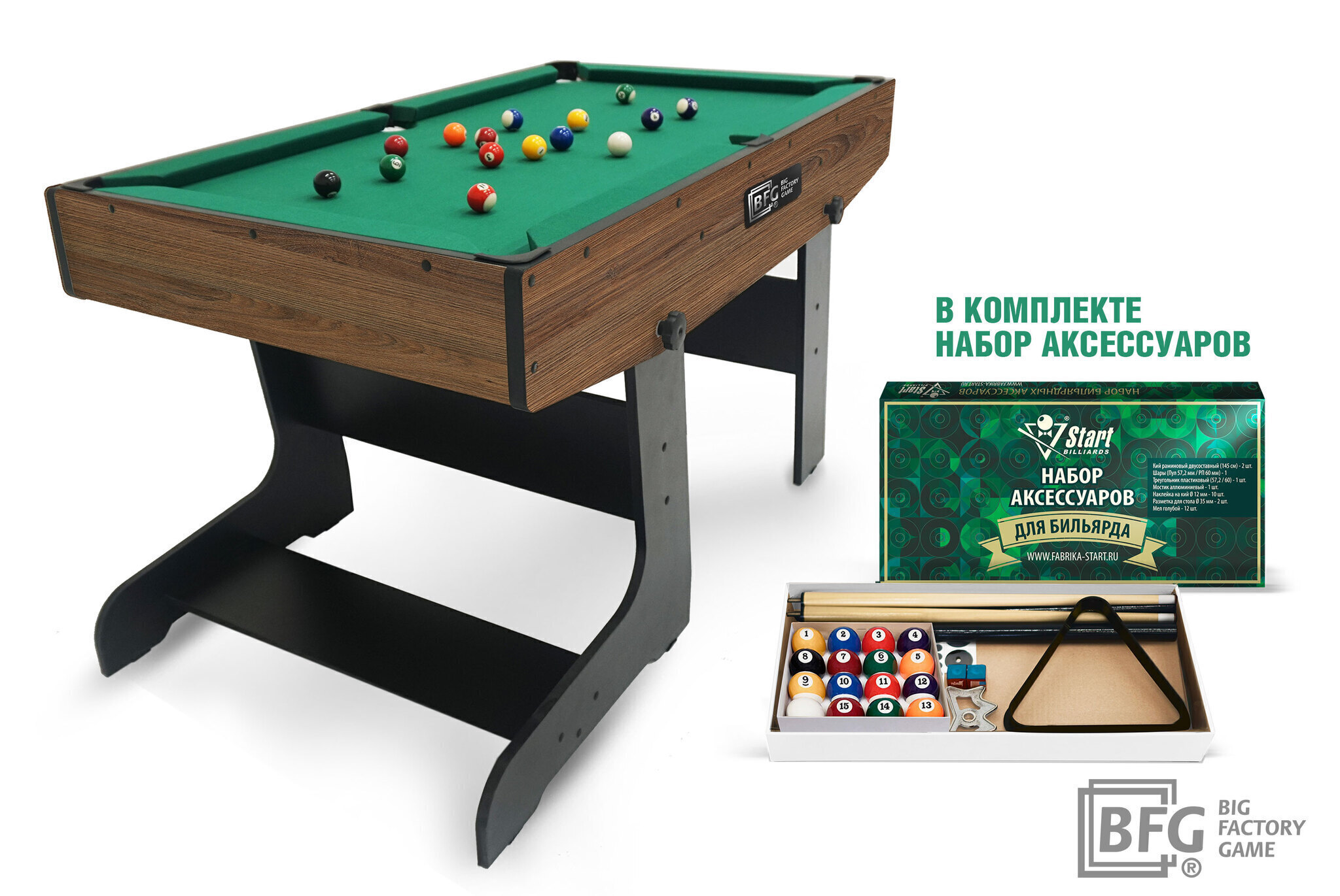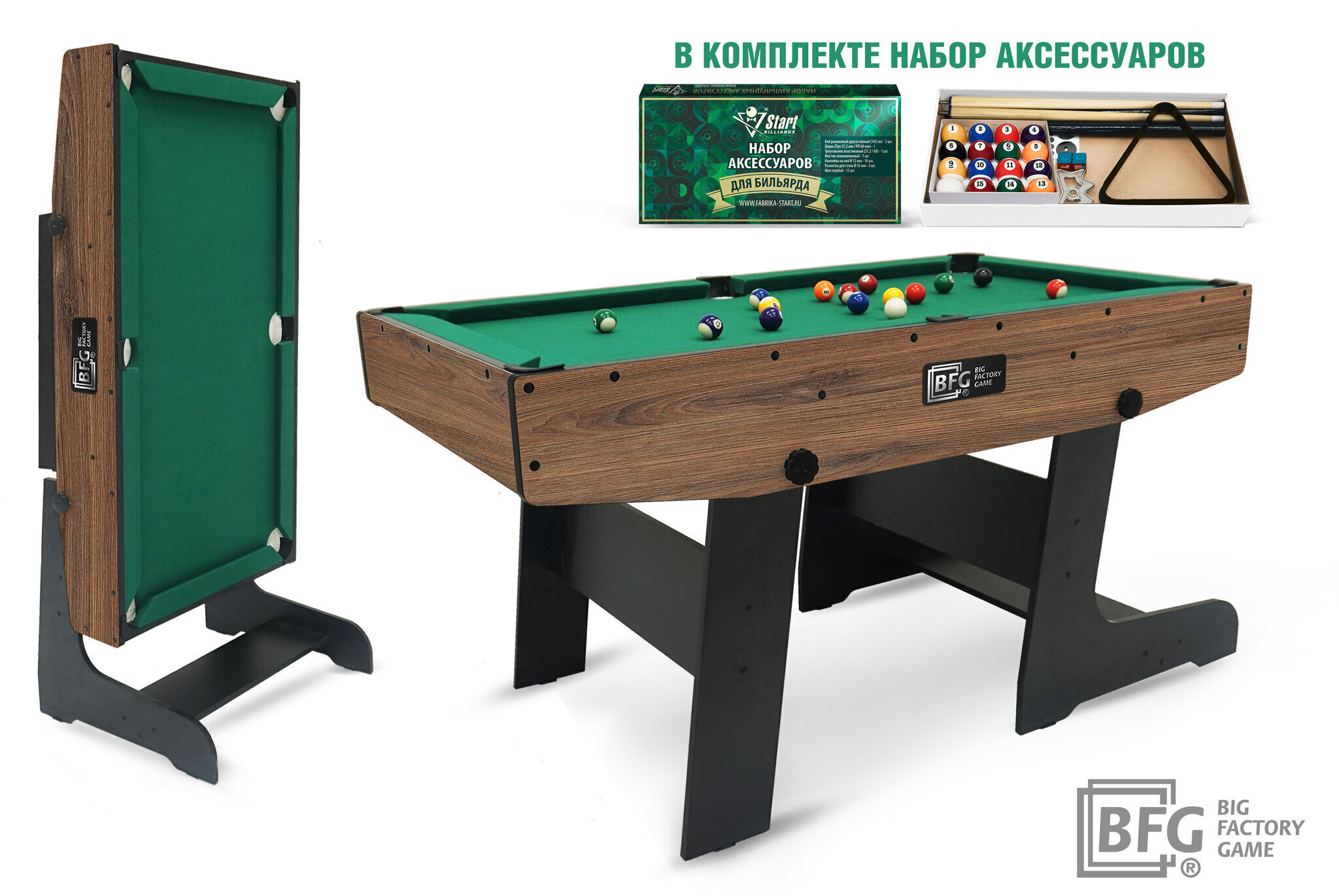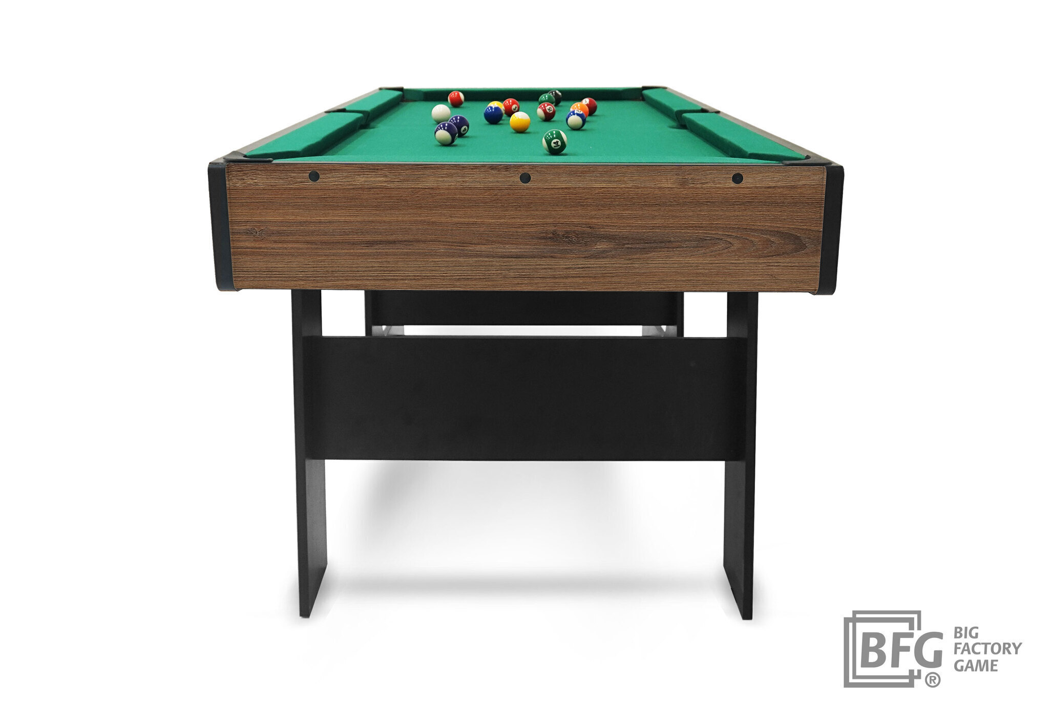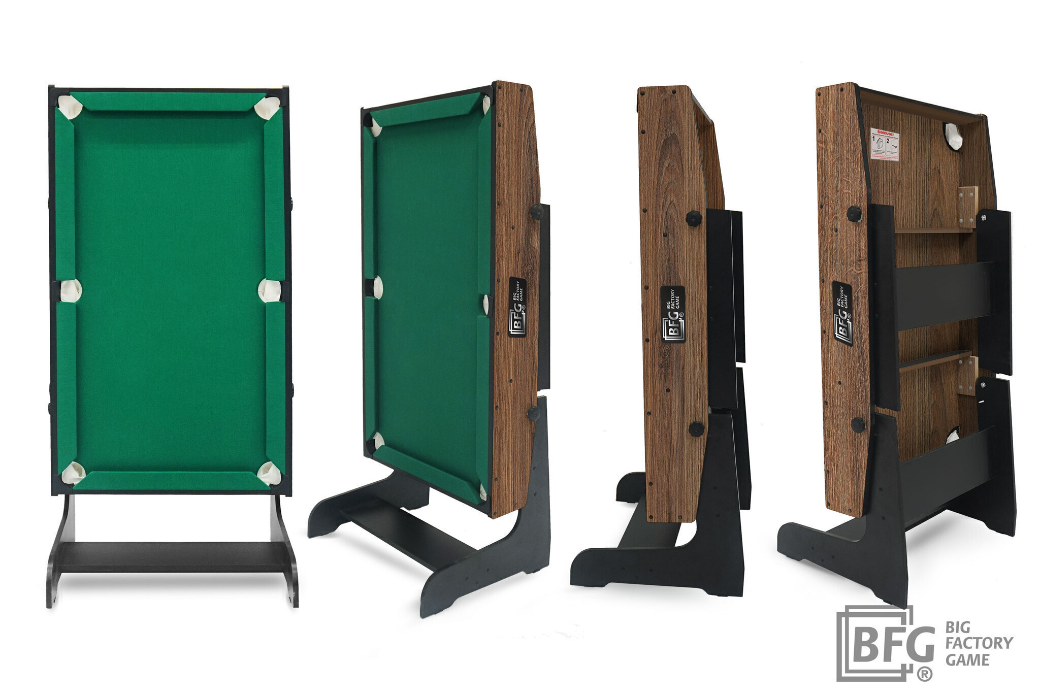 Еще одним преимуществом данной модели является удобный механизм складывания, позволяющий без особых усилий быстро сложить или разложить бильярдный стол. Благодаря складной конструкции опорных ножек, бильярдный стол при хранении занимает минимум пространства. Компактные размеры делают транспортировку и перемещение стола очень удобным.