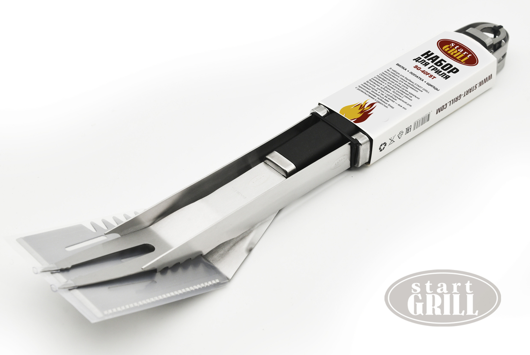Для любителей устраивать пикники на природе и готовить отличные блюда - набор для гриля от Start Grill станет незаменимым и полезным приобретением. Практичный набор инструментов состоит из 3 предметов: вилка, щипцы и лопатка. Предназначен для удобного переворачивания продуктов. Небольшого размера, из нержавеющей стали, с ручками из термопластичной резины,что позволит не получить ожёгов во время приготовления еды.