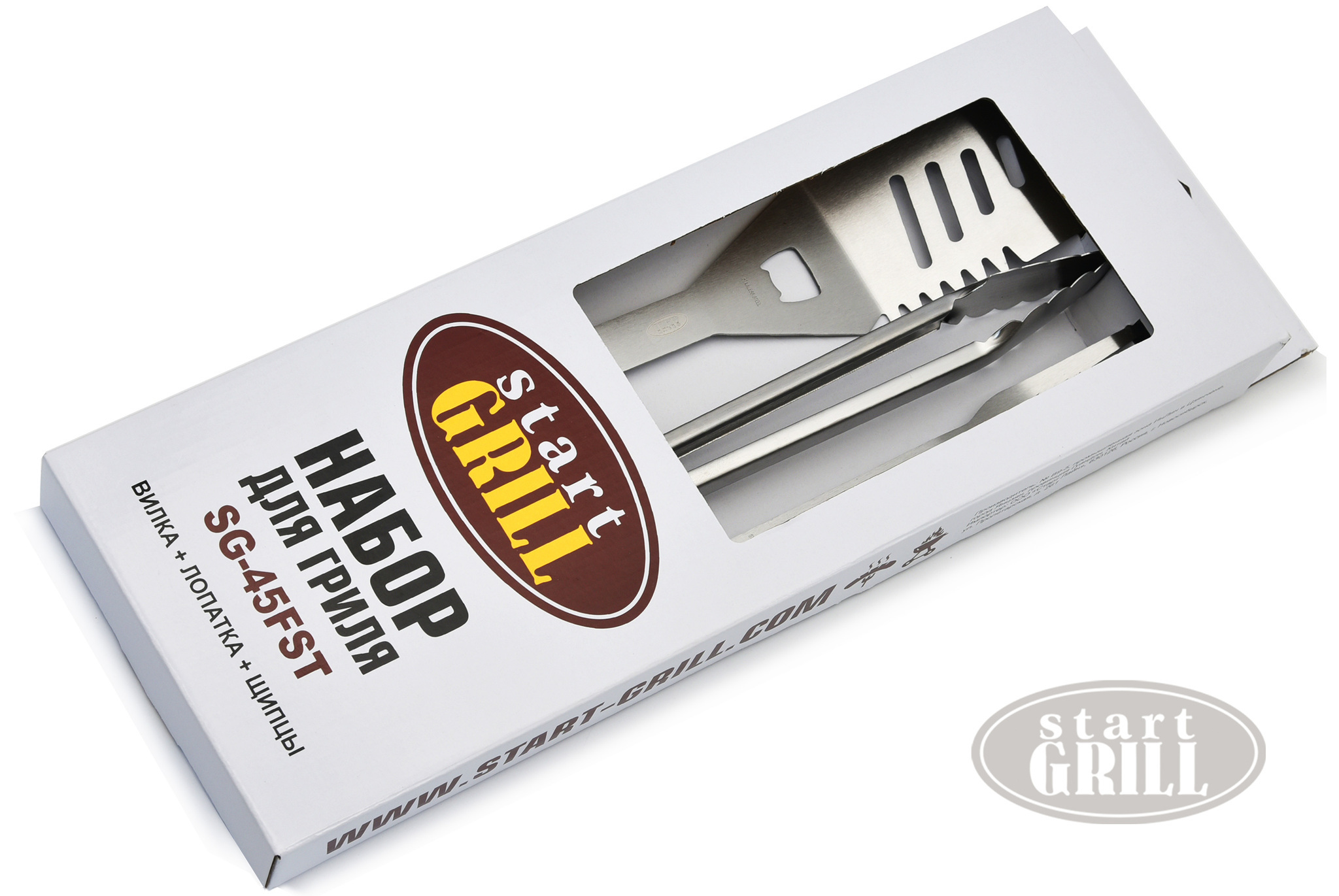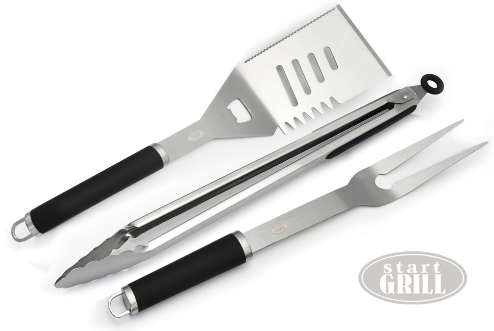 Для любителей устраивать пикники на природе и готовить отличные блюда - набор для гриля от Start Grill станет незаменимым и полезным приобретением. Практичный набор инструментов состоит из 3 предметов: вилка, щипцы и лопатка. Предназначен для удобного переворачивания продуктов. Небольшого размера, из нержавеющей стали, с ручками из термопластичной резины,что позволит не получить ожёгов во время приготовления еды.