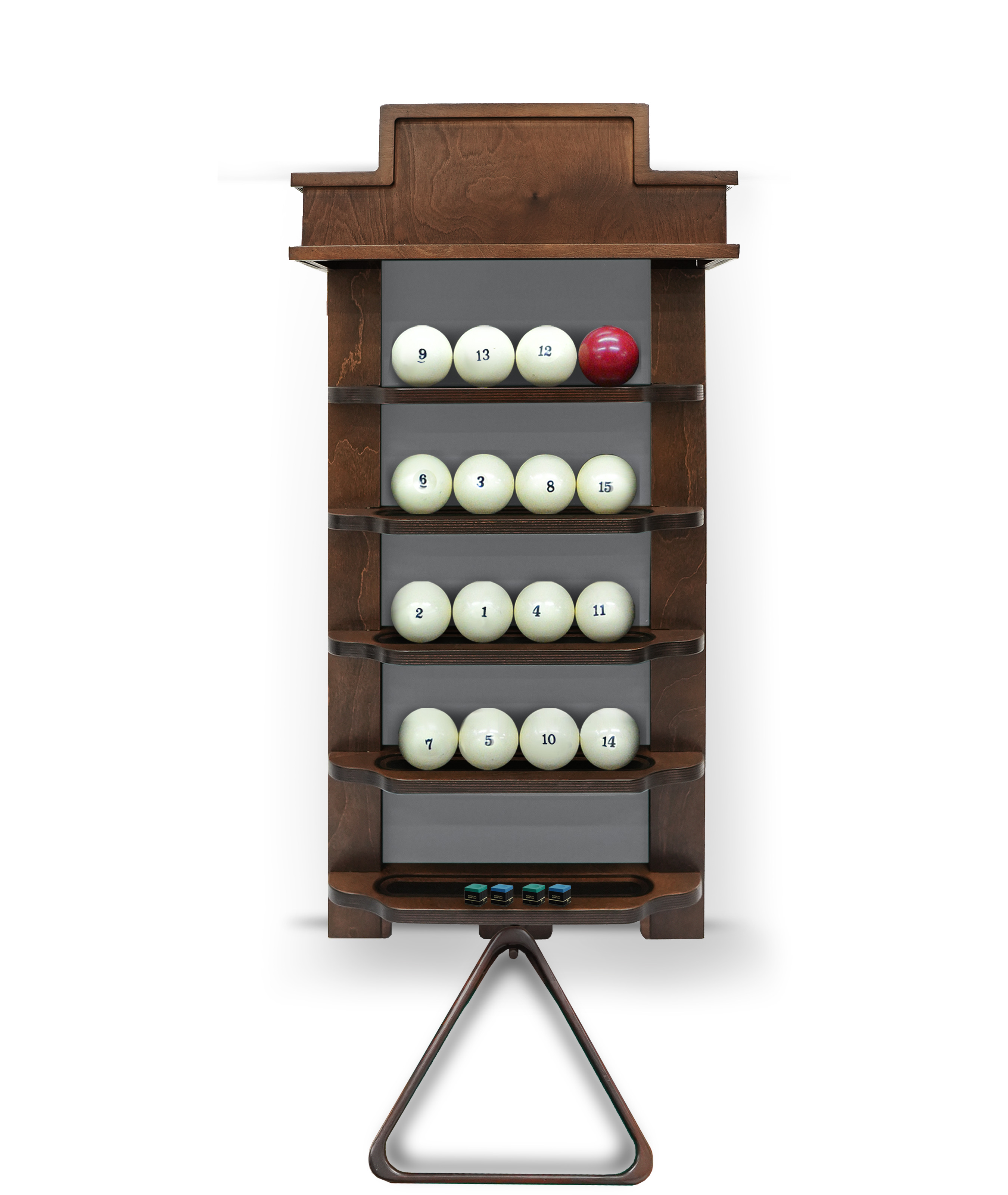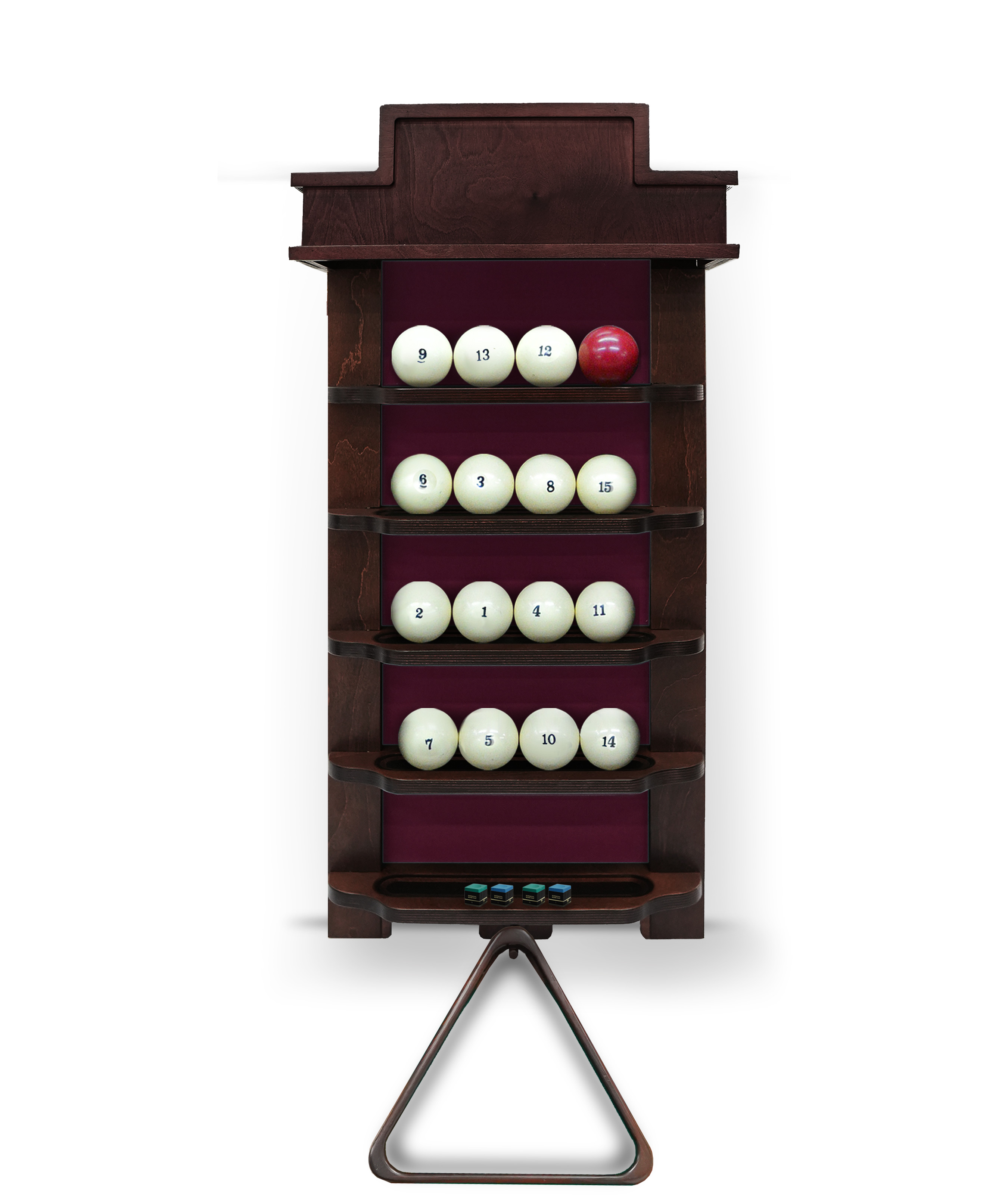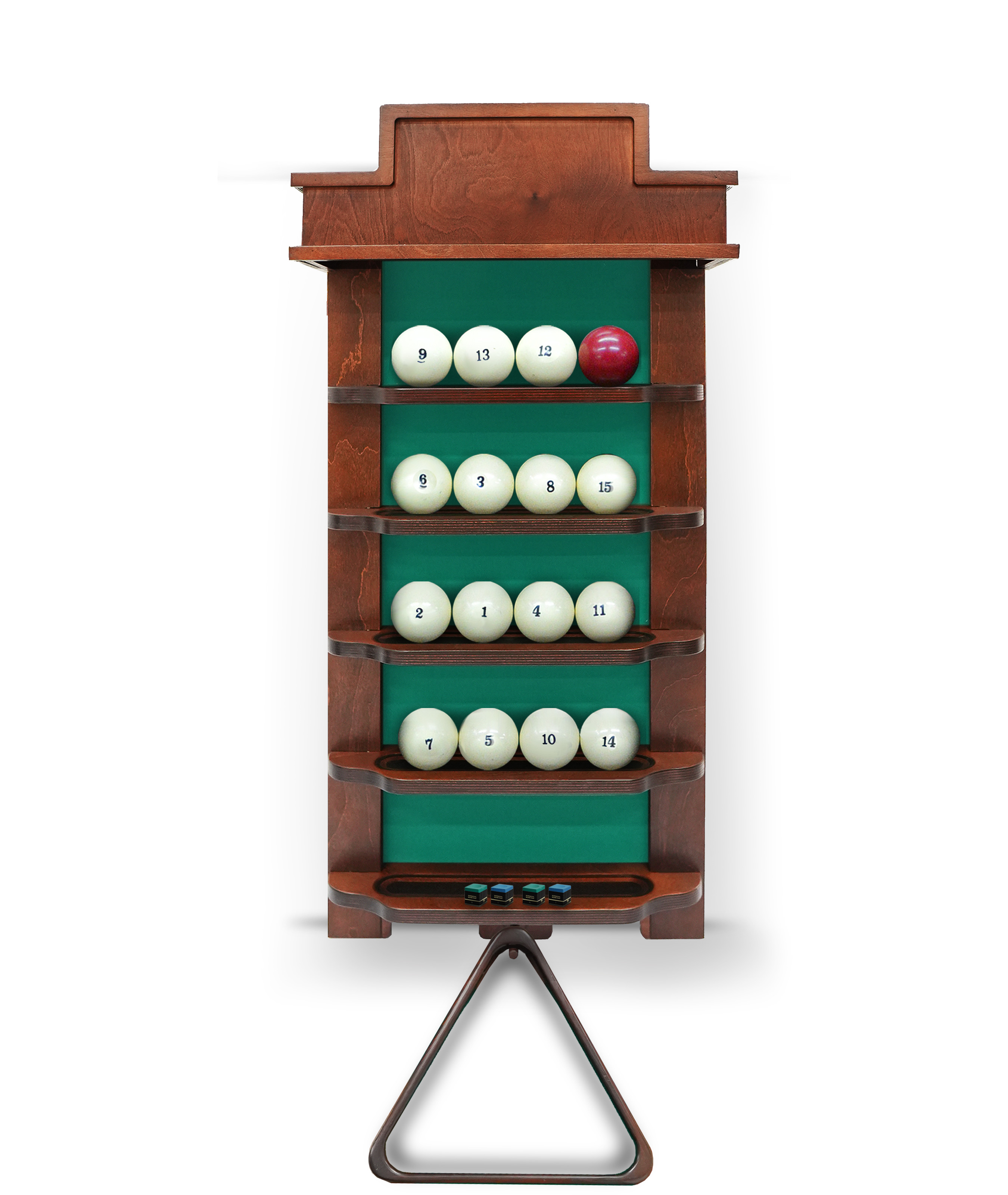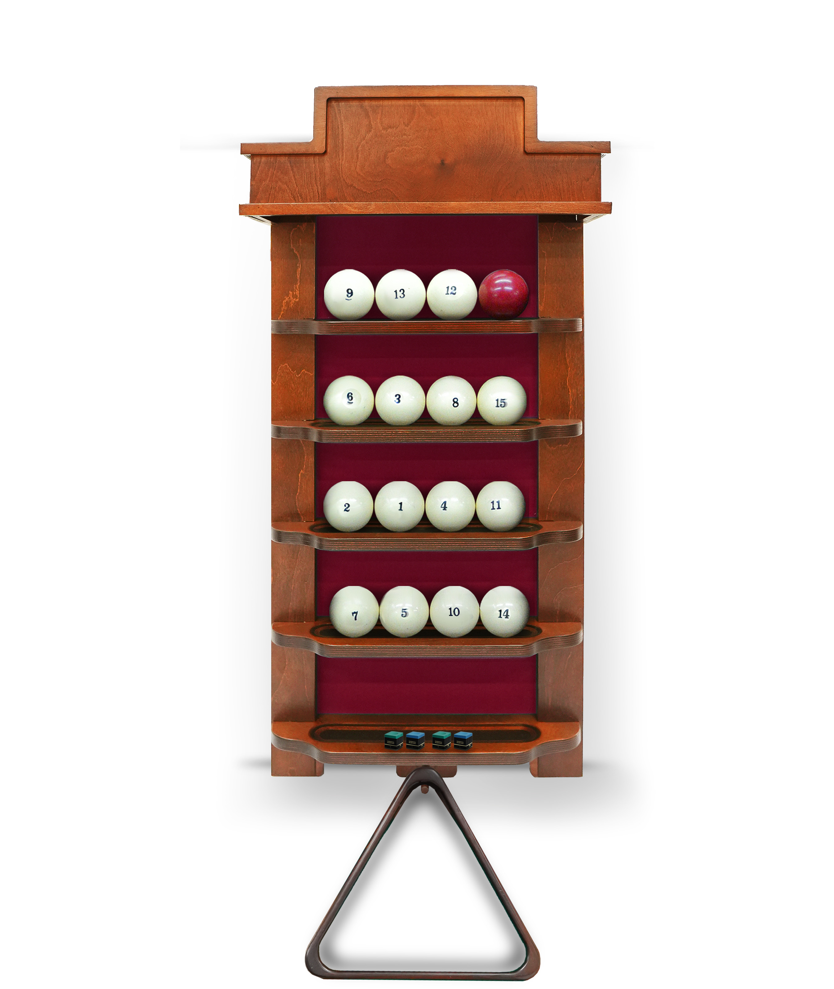 Полки оснащена держателем для треугольника и пятью полками, четыре из которых
