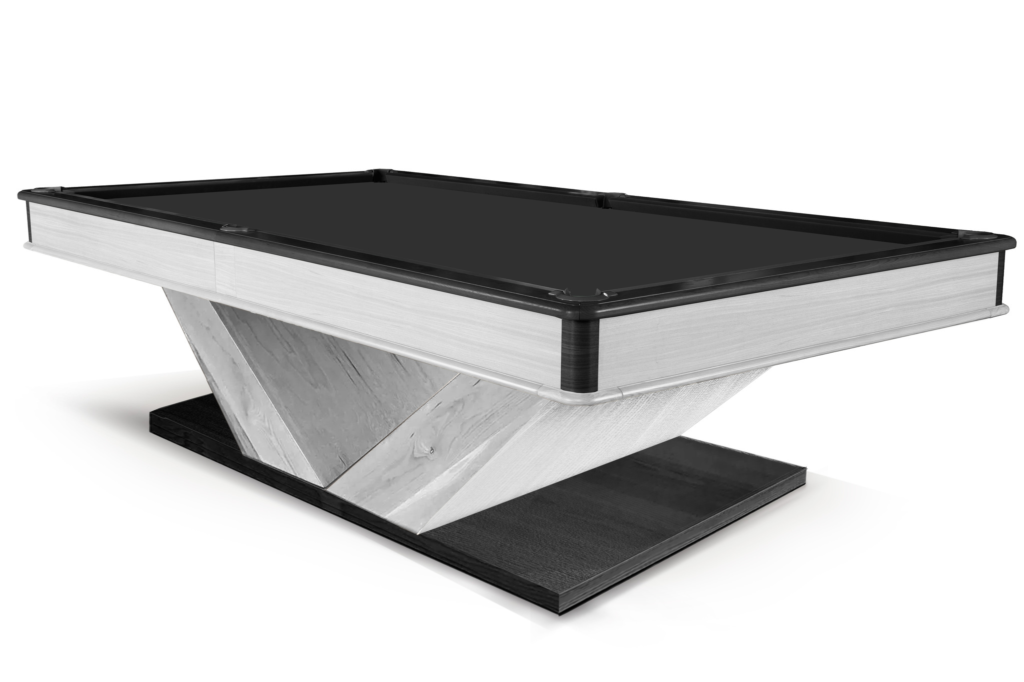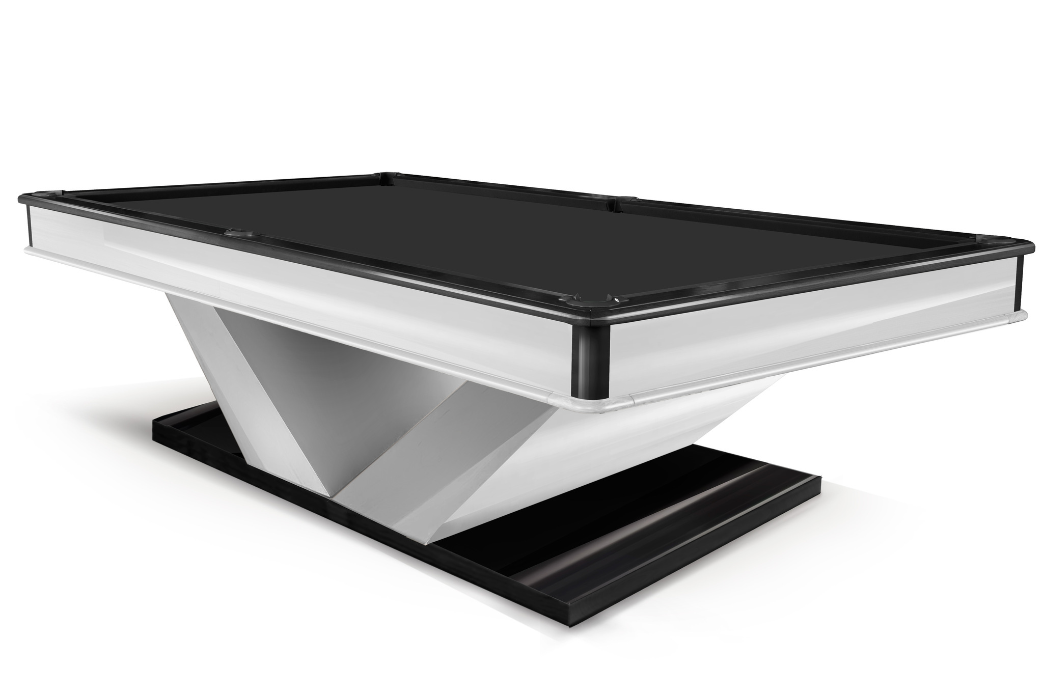 Бильярд Techno – один из самых ярких представителей столов современной стилистики. Композиция стола строится на четком ритме прямых линий, плоскостей и граней. Выразительный силуэт V-образных ног задает характер этому столу и добавляет визуальной легкости конструкции.