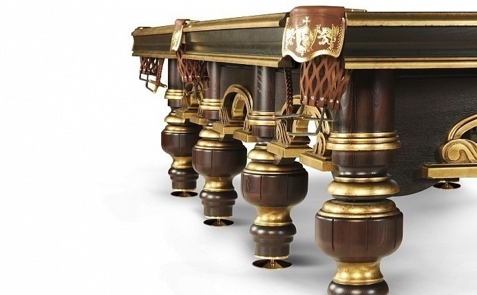 Представитель роскошной элегантности галереи эксклюзивных шедевров «Старт». Стилистика стола «Венеция-Люкс» отражает образ одноименного города, с его пышной архитектурой Эпохи Возрождения. Модель отличает особая роскошь отделки: золотая поталь украшает резной лафет ручной работы и элементы ног, тем самым делает силуэт бильярда выразительным и ярким.